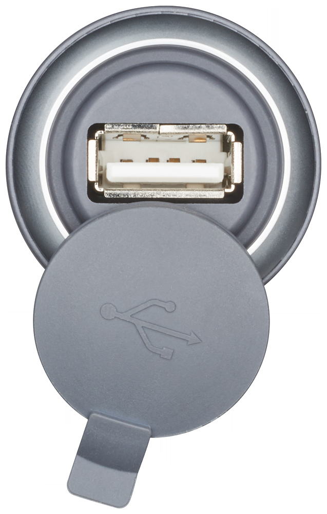 USB interface for front mounting in extension unit, pre-wired cable and connector USB2.0 Typ A, IP65 protection class w/ protective cap closed
