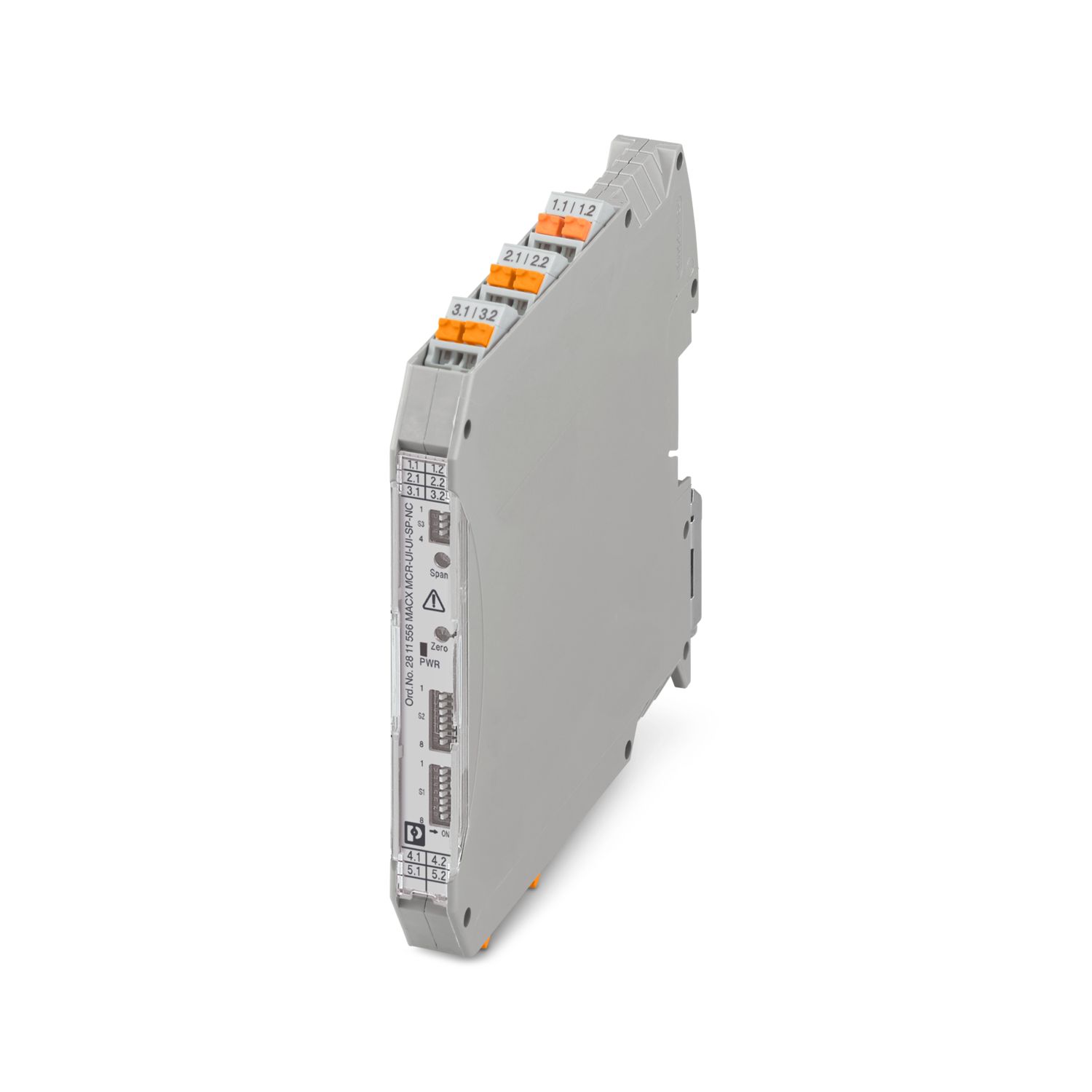 MACX MCR-UI-UI-SP-NC - Configurable 3-way isolating amplifier with safe electrical isolation, 24 V, power bridging. DIP switches on the front, over 1600 signal conversions can be set. Standard configuration (IN 0 ... 10 V/OUT 0 ... 20 mA), spring-cage connection, SIL.
