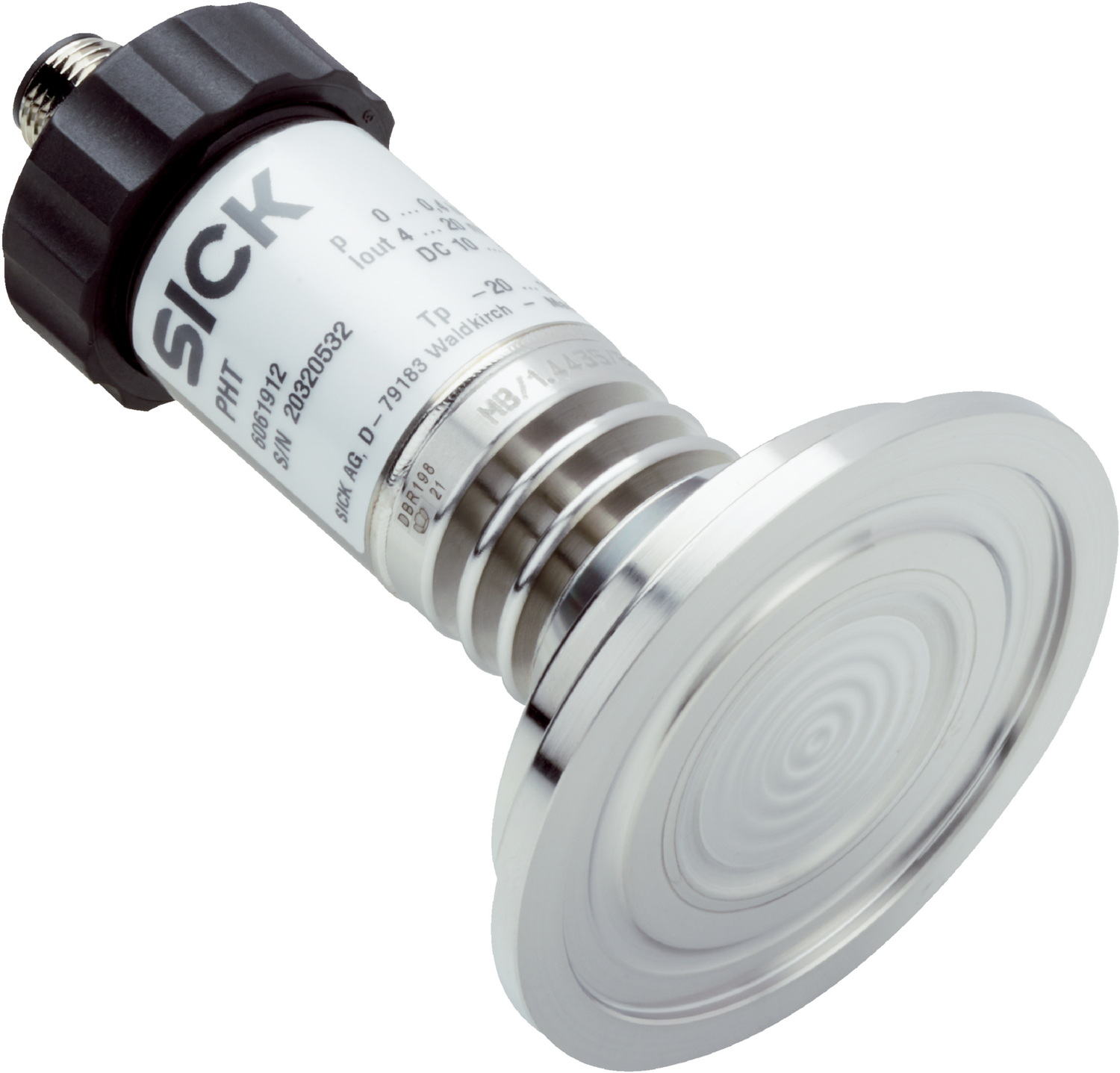 PHT-RBX40S740S0AMS0Z, Pressure type: gauge pressure, Pressure unit: bar, Measuring range pressure: 0 bar ... 0.4 bar, Process connection: Clamp (DIN 11864-3) DN 40 form A, Seal: without seal, Connection type: M12 round connector x 1, 4-pin, Enclosure rating: IP67, Supply voltage: 10 V DC ... 30 V DC
